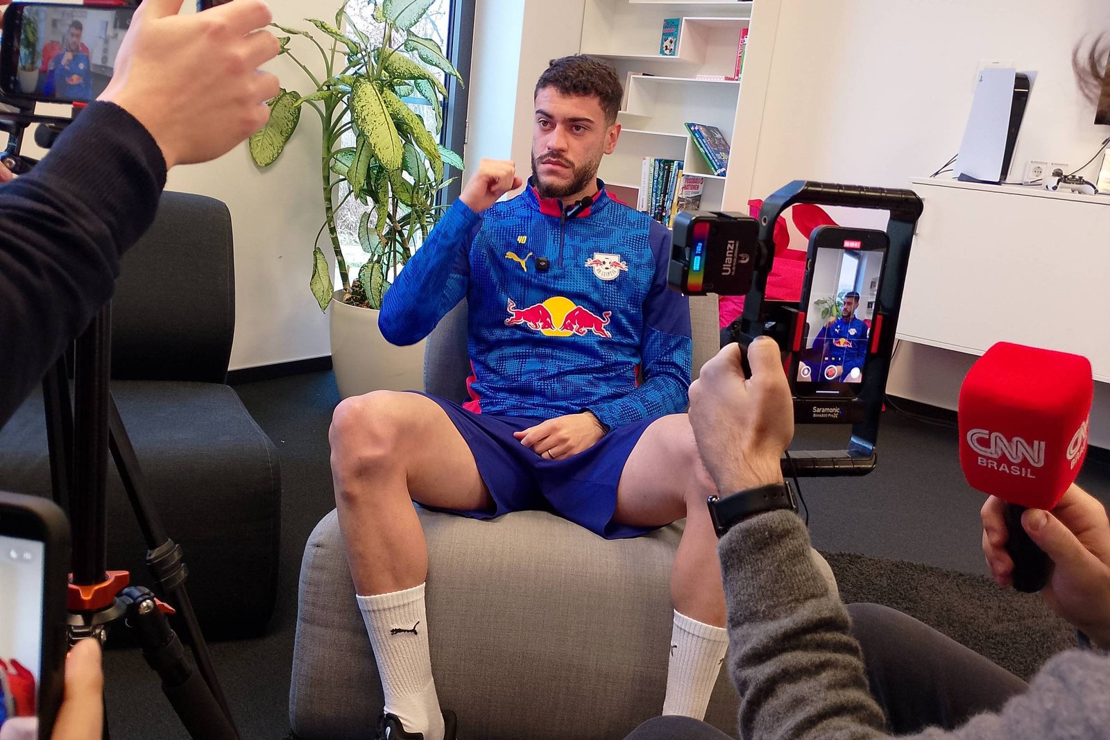 A programação tinha, além da visita ao novo QG do clube (moderníssimo) e ao estádio (Red Bull Arena), entrevistas com dois atacantes (o brasileiro Rômulo e o norueguês Nusa) e com um dirigente.
