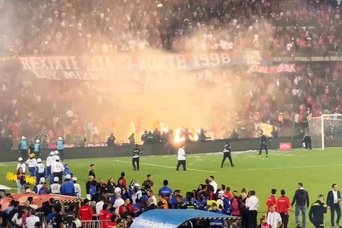 “O que deveria ter sido uma festa terminou com arquibancadas vazias”, lamentou em mensagem publicada no X a División Mayor (Dimayor), órgão que organiza os torneios do futebol colombiano.